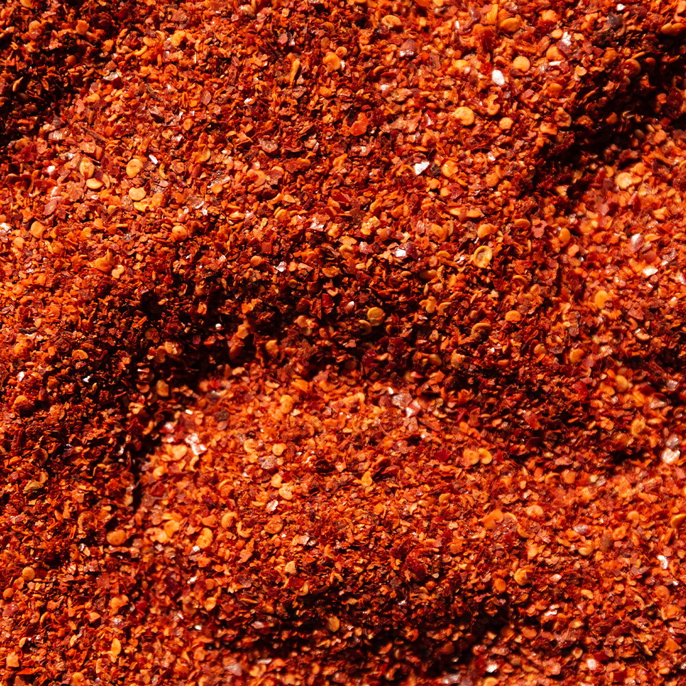 Chile Quebrado (Crushed Red Pepper). Hojuelas de chile rojo seco triturado. El sazonador perfecto para añadir picor controlado y textura. Ideal para pastas, pizzas y adobos picantes.