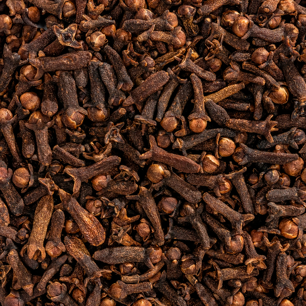 Clavo Entero (Clavo de Olor). Botones florales secos con forma de clavo. Especia de sabor intenso, cálido, dulce y picante, con alto contenido de Eugenol. Imprescindible en guisos, caldos, repostería y para infusionar bebidas calientes.