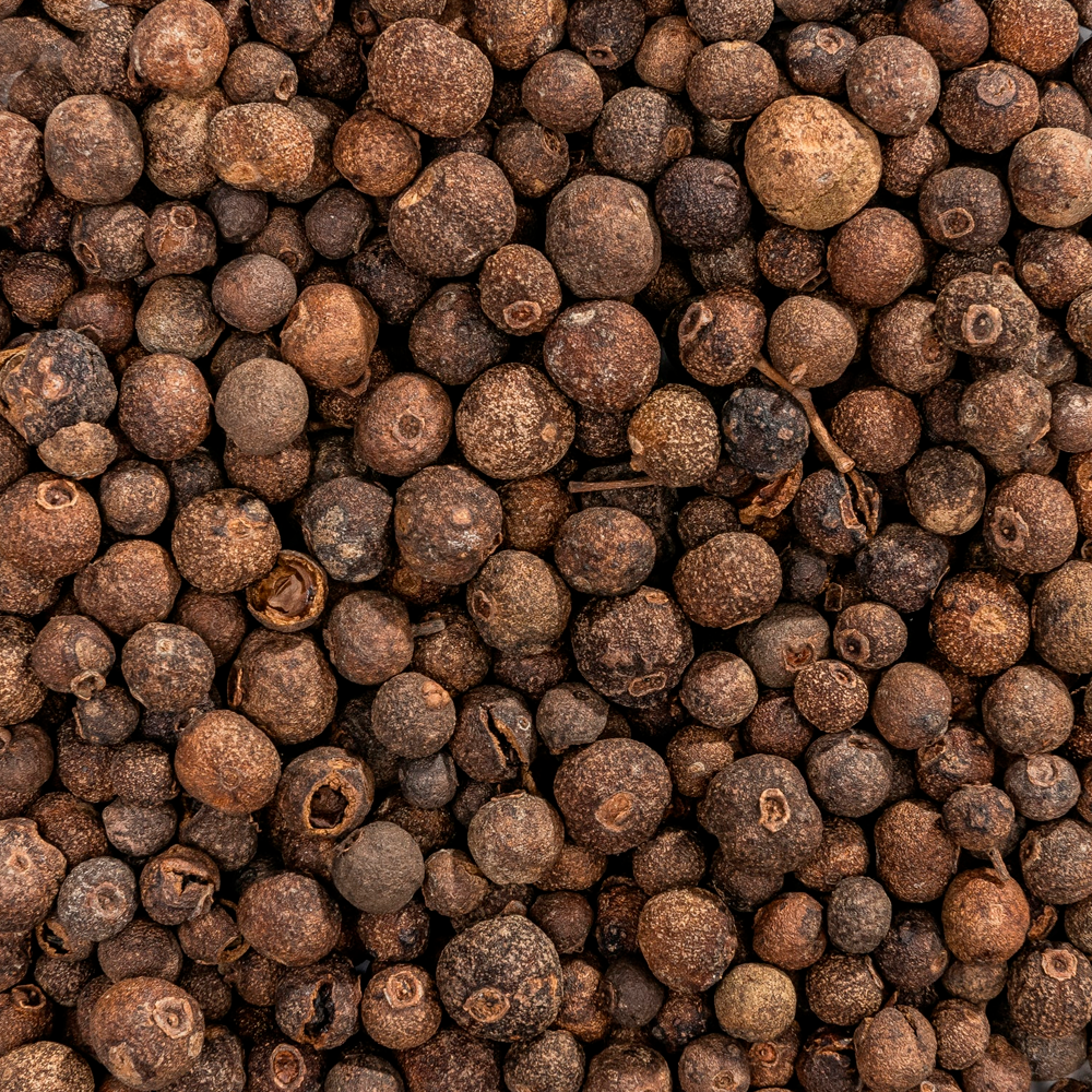 Pimienta Gorda (Allspice). El condimento que evoca la canela, el clavo y la nuez moscada. Imprescindible en repostería y guisos. Calidad aromática superior.