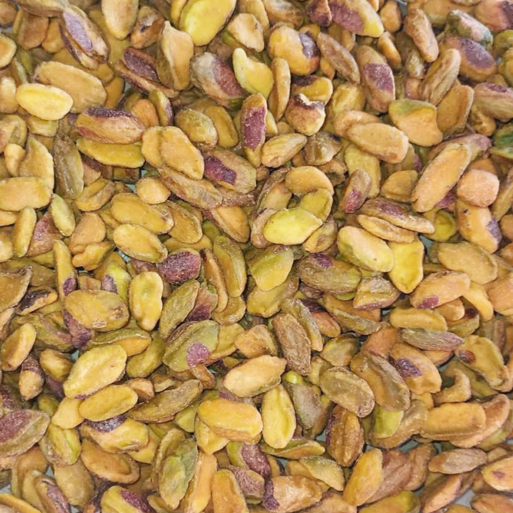Pistache. Semilla del árbol Pistacia vera de color verde brillante, textura crujiente y sabor ligeramente dulce. Se consume tostado (con o sin cáscara) como snack, y es muy apreciado en repostería, helados, salsas gourmet (pesto de pistacho) y como topping en ensaladas y platos orientales.