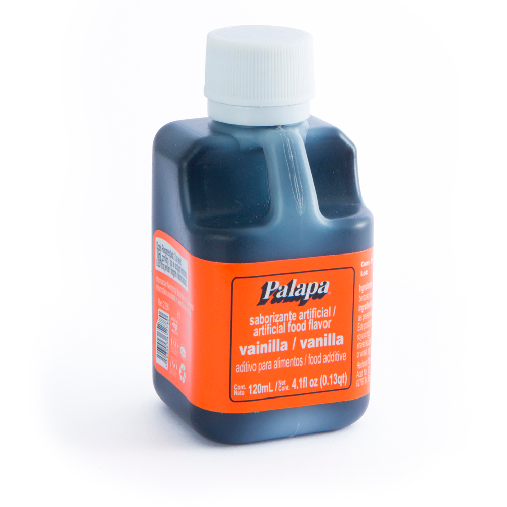 Vainilla Líquida Palapa. Saborizante artificial de vainilla con perfil aromático tradicional. Imparte un ligero color café y es ideal para gelatinas, flanes, helados, bebidas y todo tipo de repostería y panificación.
